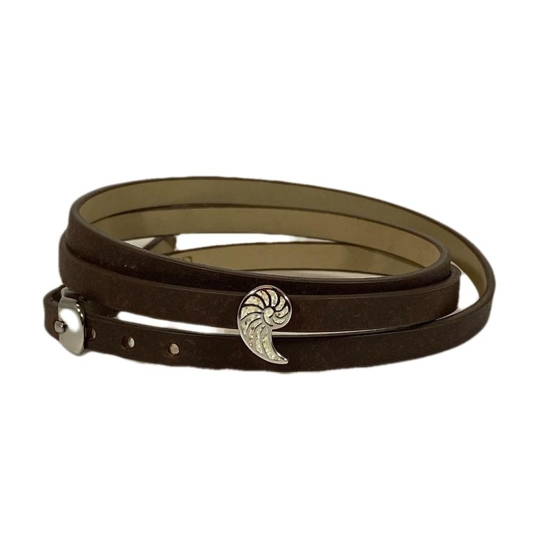 DUR Jewellery: A1597 5 Leather Bracelet Brown with Sand Element Motif Shell Design, Sterling Silver