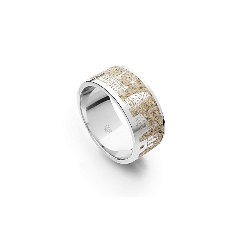 - Beach sand ring "Hamburg II" with the motifs of the city (sailor, seagull, harbour crown, town hall, Elbphilharmonie, Michel, Hammaburg and a ship) embedded in beach sand and set in rhodium-plated 925 sterling silver.