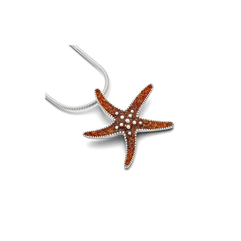 - The pendant in the shape of a starfish enchants with a clear, shiny design and a filling made of real amber sand