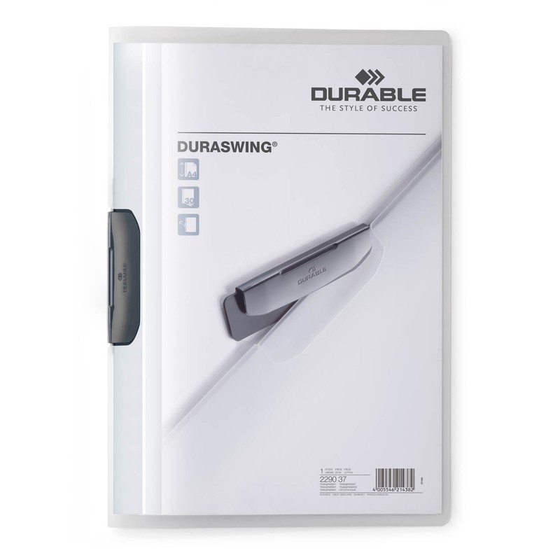 - Box contents: Durable Duraswing 229037 clip folder, up to 30 sheets of A4, transparent