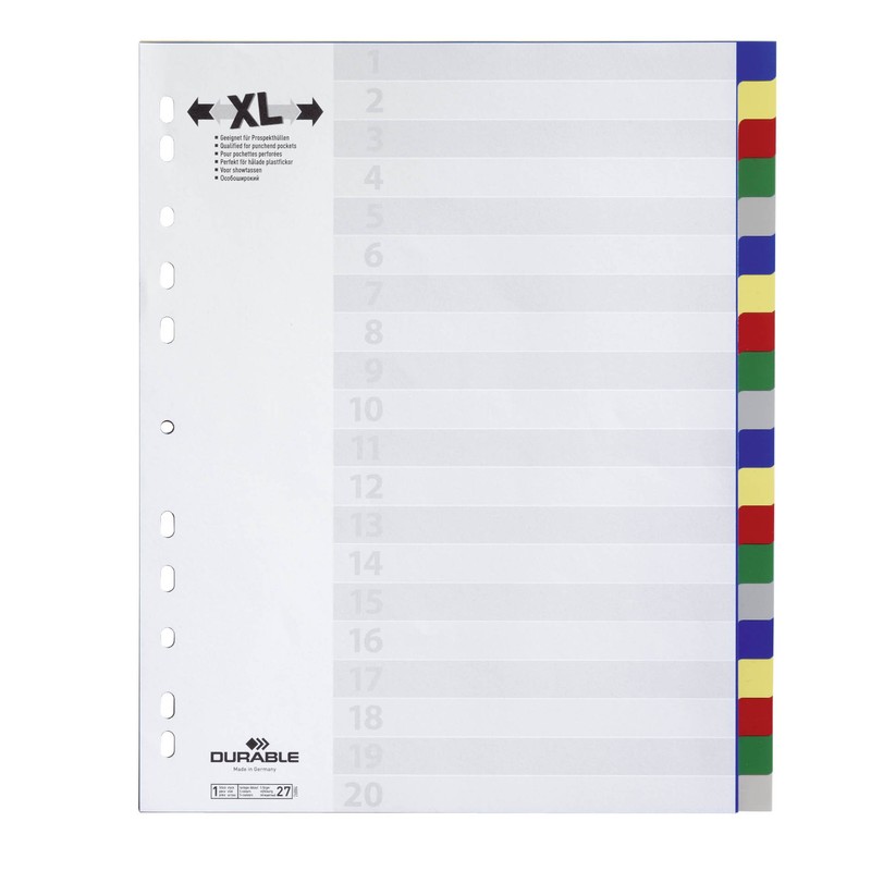 Durable 675927 Index Plastic with Coloured Tabs Extra-Wide Pack of 20