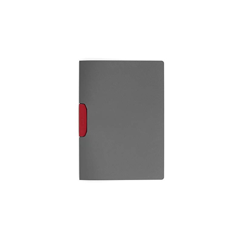 - Clamp folder made of opaque polypropylene film in anthracite with laterally swivelling plastic clip
