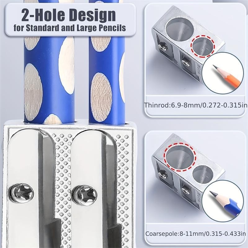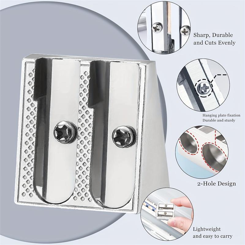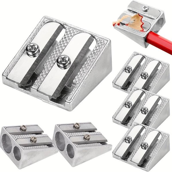 Durable Metal Pencil Sharpener, 4 Counts/set 1/2 Hole Handheld Wedge Design Pencil Sharpener, Writing Tools for School, Office, Art Projects - Color: Silver, Specification: Single Hole*4 Counts
