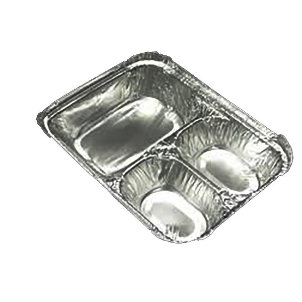 Durable Packaging 3-Compartment Oblong Aluminum Foil Container, 23 Oz, 6.56 X 8.69 X 1.81, Silver, 500/carton