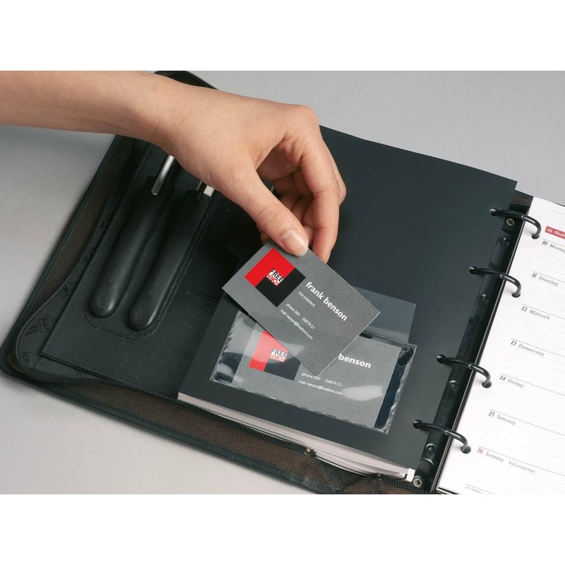 Durable Pocketfix Plus, Selbstklebetaschen mit Verschlusskappe für Visitenkarten, 10 Stück, 106 x 65 mm, transparent, 809219