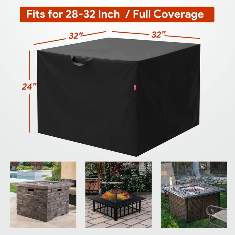 - High Quality Material: The 32 inch fire pit cover square is made of 600D Polyester fabric with durable thick reinforced heavy duty PVC waterproof coating. Extremely durable, breathable, anti-hook and 100% waterproof and weatherproof, anti-UV, can protect your fire pit cover to the greatest extent from the influence of outdoor factors such as sunlight, dirt, rain, wind and snow, etc.