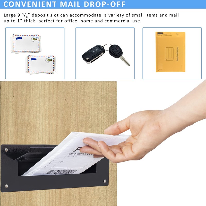 - Versatile – This through-the-wall mail chute is perfect for securely depositing thin envelopes, payments, and other non-bulky items up to 1" thick such as keys and car remotes. Ideal for home, office, school, or commercial use.