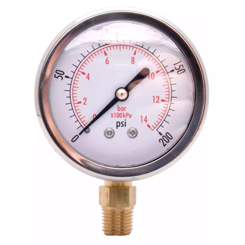 DuraChoice 2-1/2" Oil Filled Pressure Gauge, SS Face, 1/4" NPT, Lower Mount, 0-200PSI