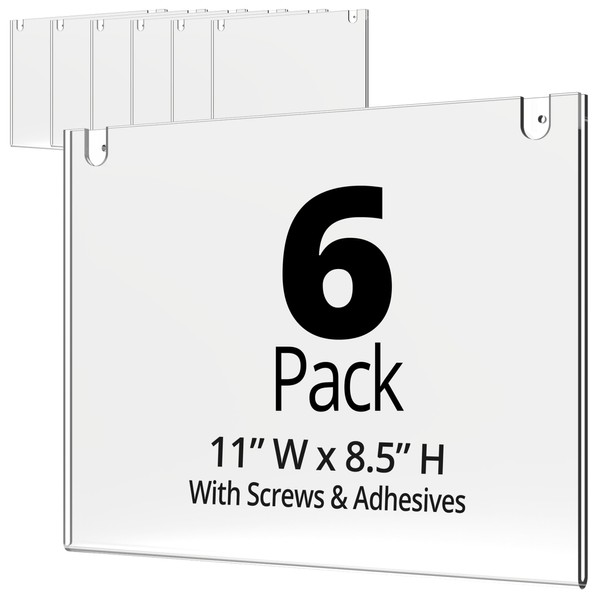 DuraClear Acrylic Sign Holder 8.5 x 11 Wall Mount - Premium Hanging Sign Holder with Mounting Essentials - Landscape - 6 Pack