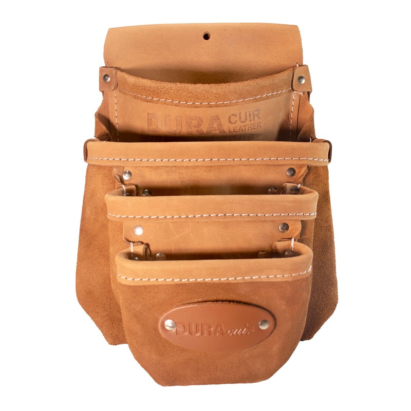 Duracuir Construction Leather Tool Pouch, 4 Pockets,