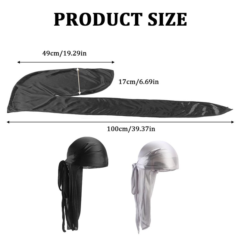 - ♂️【Function】: A total of 2 long durag headbands. 2 colors: black and grey. Comes with a long tail so you can create different styles. Silky Durag is designed to create and hold waves, fix hairstyles and even cover the head. It is versatile while protecting your head and neck from the sun.