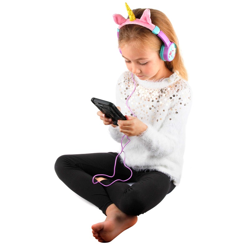 DURAGADGET Volume Limiting Magical Unicorn Kids' Headphones with Audio Sharing Port - Compatible with HP 14-ac126na