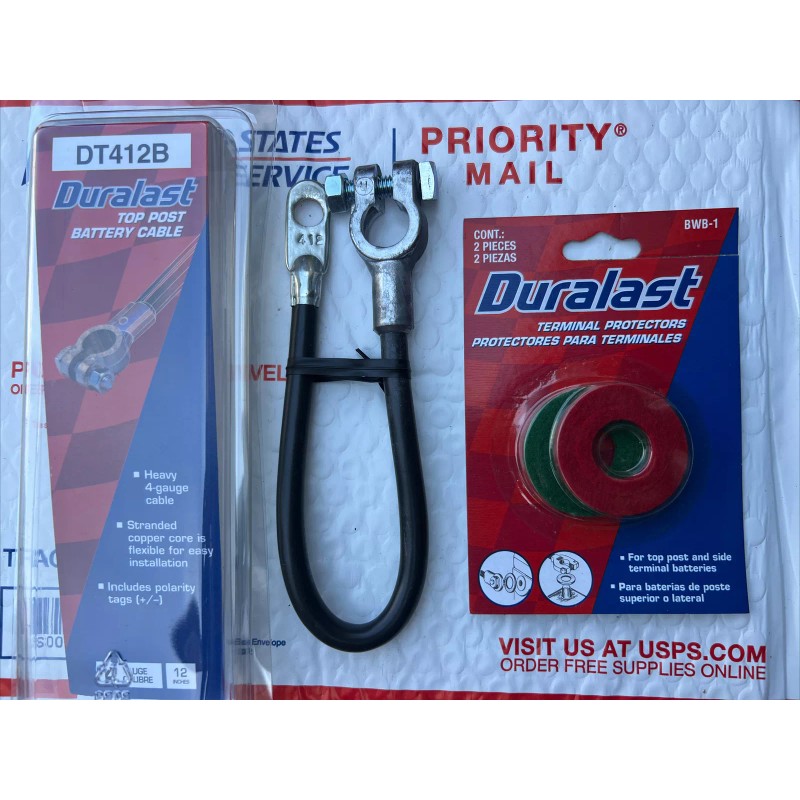 DURALAST TOP POST BATTERY CABLE DT412B HEAVY 4 GAUGE, 12 “ +Terminal Protector