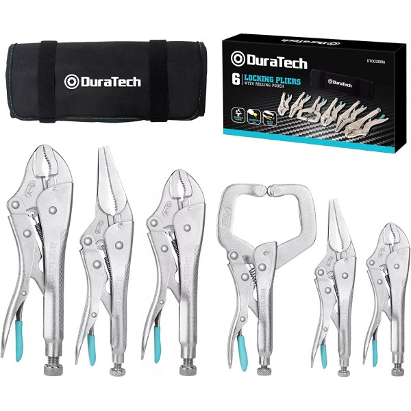 DURATECH 6PC Locking Pliers Set C-clamp Long Nose Curved Jaw Locking Pliers
