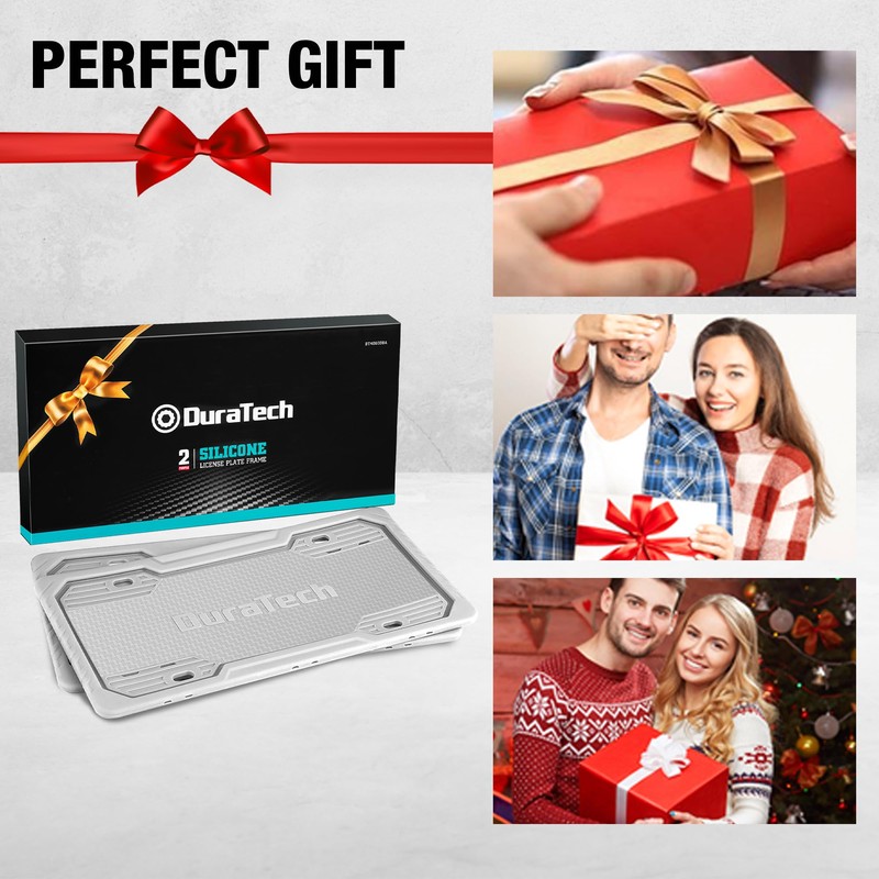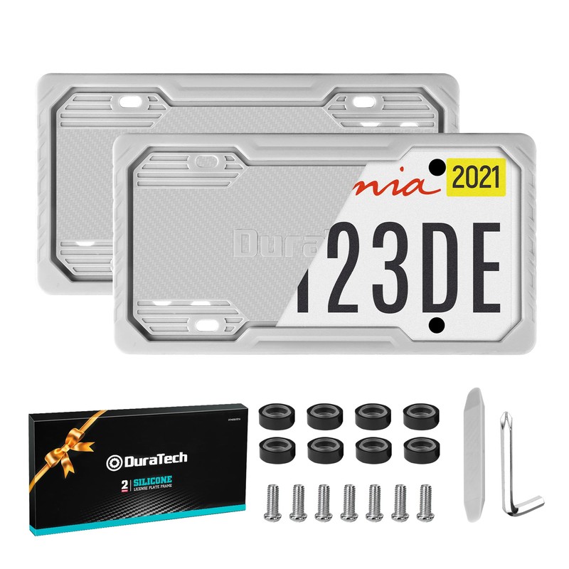 DuraTech Silicone License Plate Frames, Rust Proof Plate Cover for Car, Rattle Proof Plate Protector with Installation Tool Kits, Waterproof License Plate Holder for Extreme Weather (2Pc, Grey)