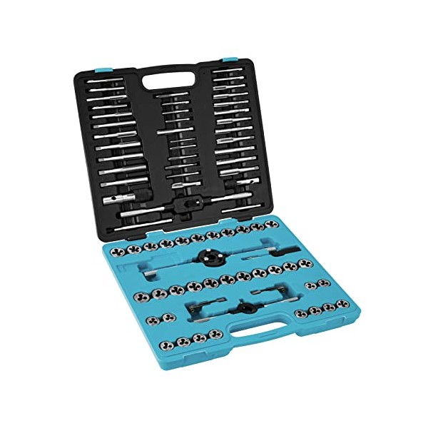 DURATECH Tap and Die Set, Metric and Standard, 76-Piece, Rethreading Tool Kit for Cutting External and Internal Threads, Organized in Storage Case