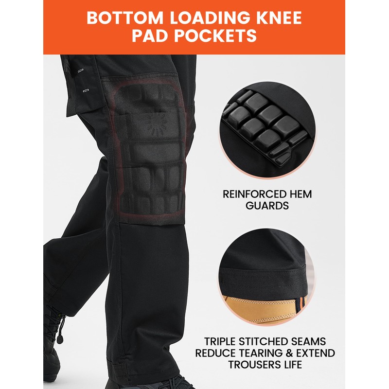 DURAWERK Men's Work Pants, Carpenter Pants with Reinforced Knee Pad Pockets & Knee Pads, Cargo Pants for Construction (Black, 36WX30L)