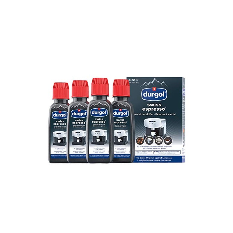 Durgol Swiss Espresso, Descaler and Decalcifier for All Brands of Espresso Machines and Coffee Makers, 4.2 Fluid Ounces (Pack of 4)