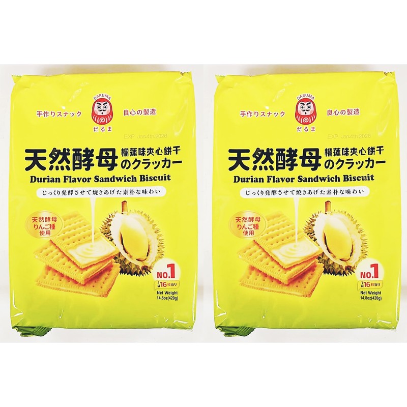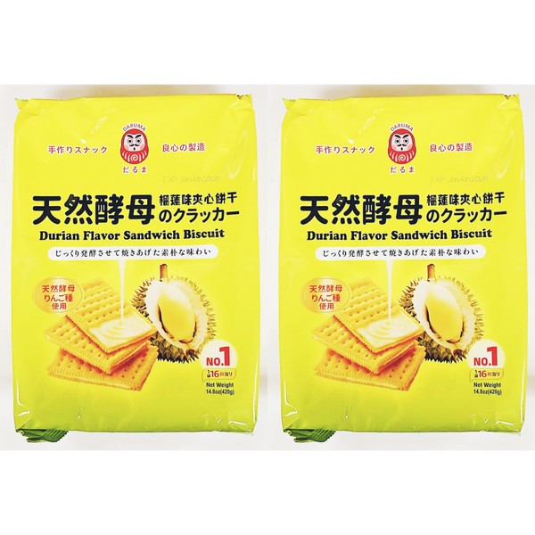 Durian Flavor Sandwich Biscuit, Natural Yeast Crackers, 14.8oz, Pack of 2