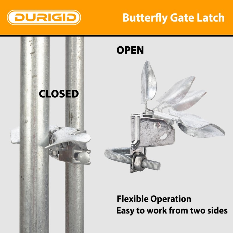 DURIGID Butterfly Gate Latch Heavy Duty, Galvanized Finish, Used for Chain Link Fence Gate, Chain Link Fence Butterfly Gate Latch Fits 1-3/8" O.D. Gate Frames and 2-3/8" O.D. Gate Posts, 2 Pack