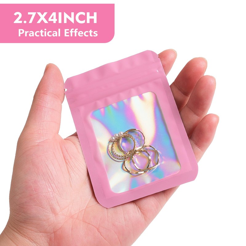 Durimoiy Durimoiy 100 Pack Holographic Bags, Resealable Bags for Small Business with Front Window,Sample Baggies Sealable Mylar Bags (2.7x4 Inch, Pink)