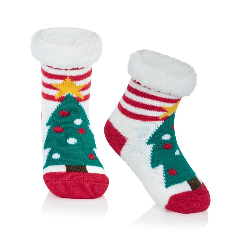 Durio Christmas Socks Baby Socks Thermal Socks Cuddly Socks Christmas Socks Children Non-Slip Socks Baby, Red and White Christmas Trees
