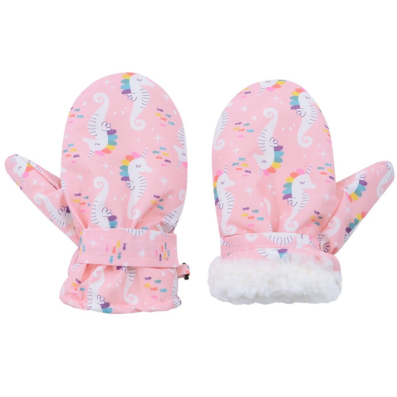 Durio Mittens Children's Ski Gloves Waterproof Windproof Warm Winter Gloves Ski Gloves for Boys and Girls Skiing Snowboarding Cycling, Pink Hippocampus