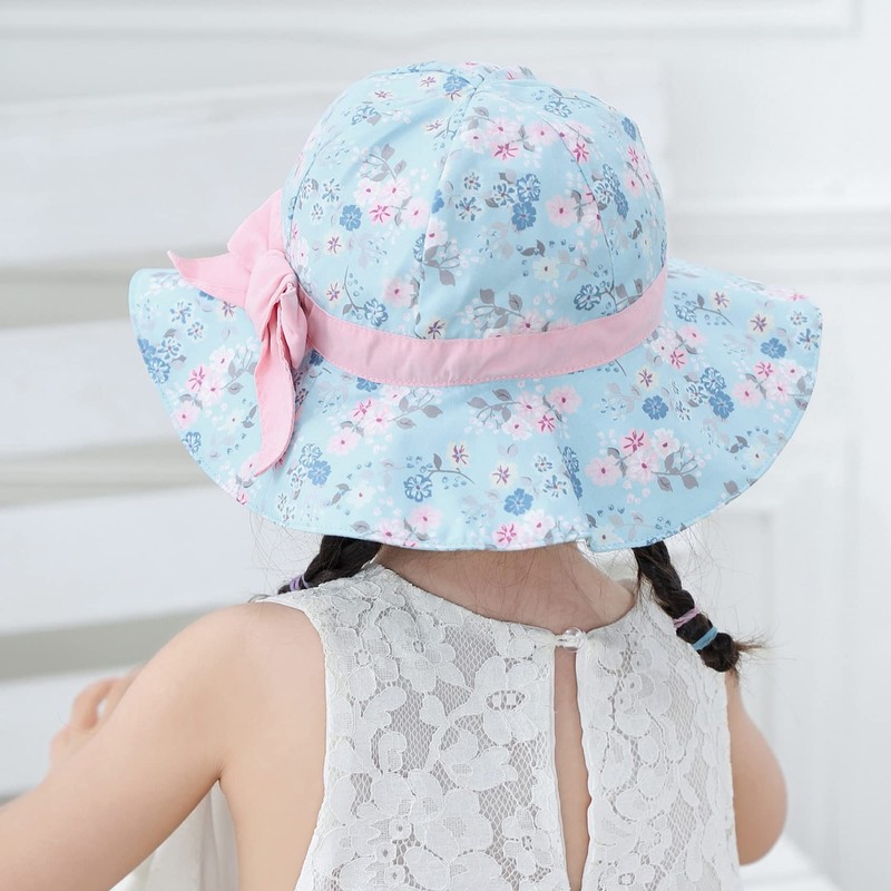 Durio Sun Hat Baby Girls Boys Children Sun Protection UPF 50 Summer Children's Hat Fishing Hat with Wide Brim, BLUE FLOWERS