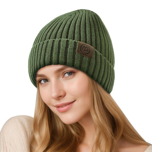 Durio Winter Hats for Women Men Satin Lined Beanie for Women Soft Silk Lined Beanie Hat Knit Chunky Beanie Ski Snow Hat Olive Green One Size