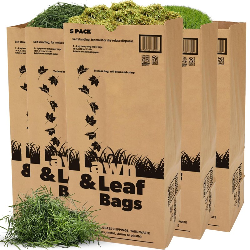 Duro 50# Large 30 Gallon Lawn and Leaf Bags, 2-Ply Brown Paper Yard Waste Bags for Home and Garden Refuse - Pack of 10