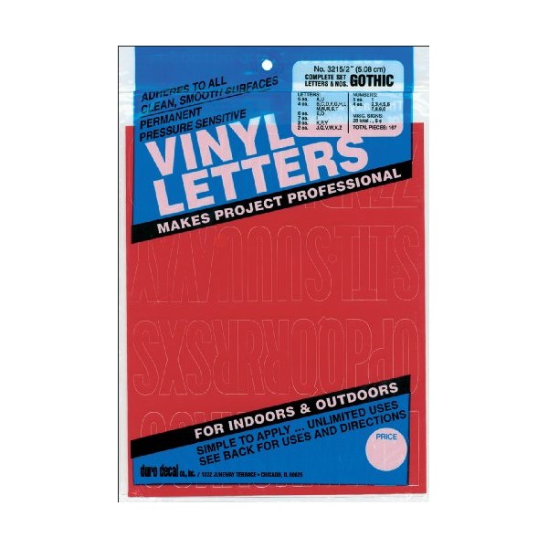 Duro Decal Permanent Adhesive Vinyl Letters & Numbers: 2" Gothic Red