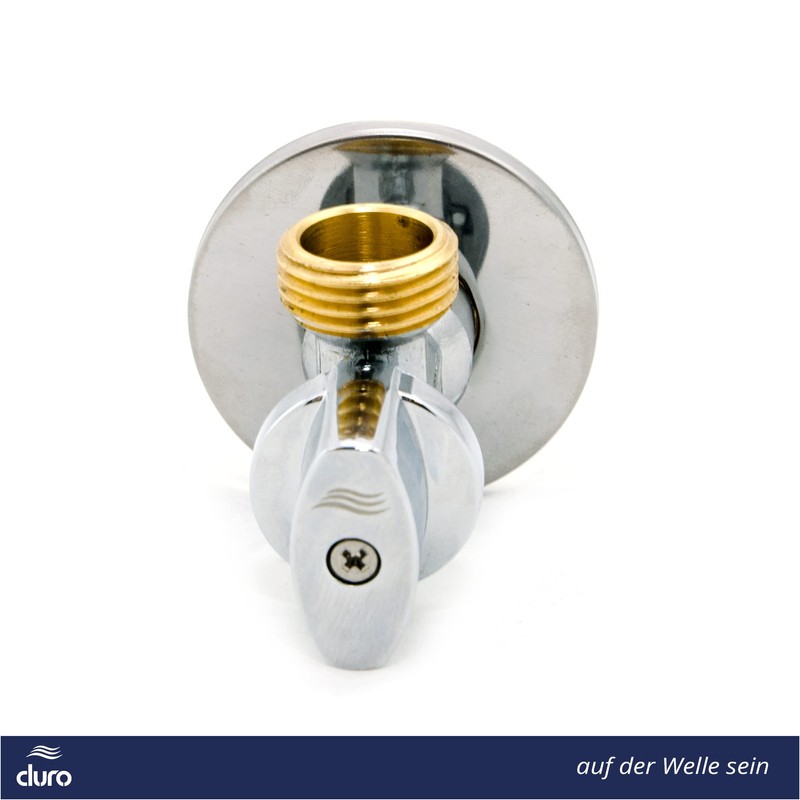 Duro Smart Angle Valve, 1/2 to 1/2 Inch Angle Regulating Valve for Cold and Hot Water Pipes, Chrome-Plated, with 1/4 Turn Closing Valve for Quick Opening and Closing of the Valve