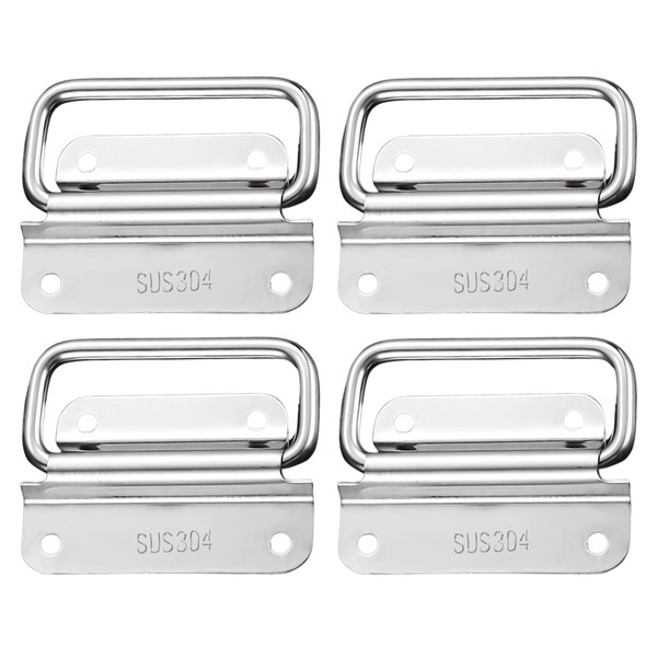 Duronge Stainless Steel Folding Handle Set of 4 75mm - Universal Carry Handles for Boxes, Hardware Boxes, Speaker Boxes, Toolboxes & Tool Boxes - Silver