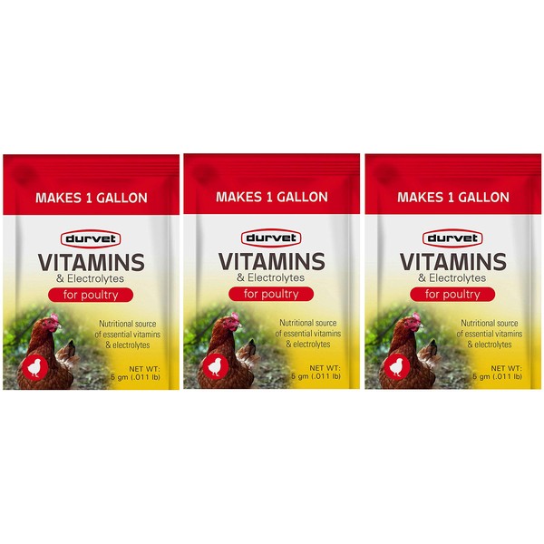 Durvet 3 Pack of Vitamins and Electrolytes for Poultry, 5 Grams, Makes 3 Gallons
