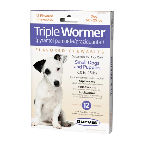 DURVET 12-Pack Triple Wormer Tablets for Puppies and Small Dogs. 7 way wormer treats Tapeworms, Roundworms, Hookworms and more.