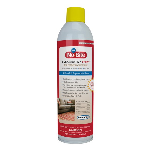 Durvet No Bite IGR Flea and Tick Spray, 16 Ounces, for Carpets and Furniture
