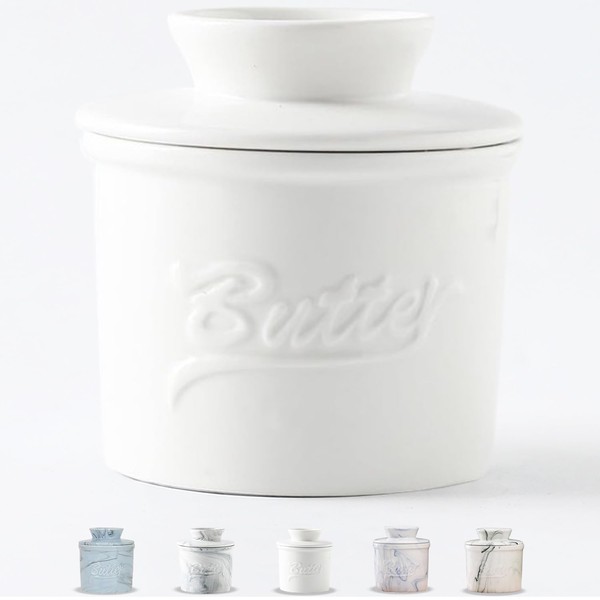 - 【High quality porcelain】Lead-free, splinter-free and more stable than stoneware. The material of this ceramic butter dish with lid can block odors and resist moisture absorption. In addition, this butter crock is safe for microwave, dishwasher and freezer.