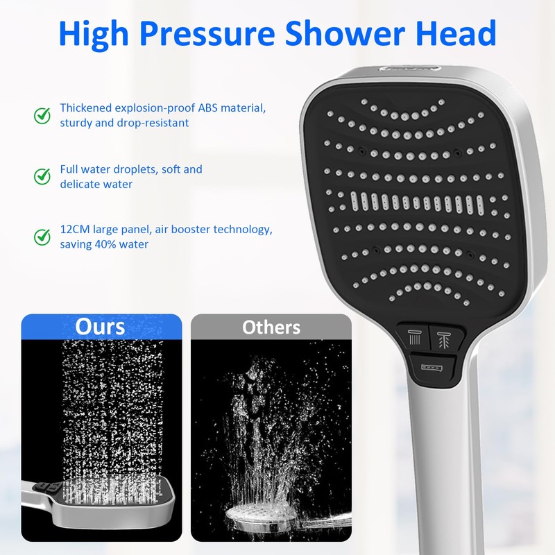 - 【Hochdruck-Duschkopf】Dieser leistungsstarke Duschkopf verwendet eine Luftdrucktechnologie, die den Wasserdruck erhöhen kann. Der große Bereich des Duschkopfes sorgt für eine breitere Oberflächenabdeckung und bietet ein gesundes Duscherlebnis. Die Air Boost-Technologie kann 40% Wasser sparen, die Steigerung wird nicht stechen, mehrschichtige Isolierungstechnologie.
