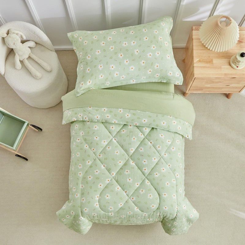 • Green Floral Design:our comforter combines various white floral which can attact to full of children interet, ,simple and cute,makes your toddler's room more sweety.
