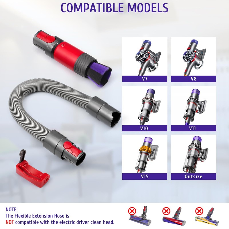 • ★[Compatible Models] This soft brush + extension hose replacement for Dyson V7 V8 V10 V11 V15 vacuum cleaner attachment, soft bristle dusting brush, for fine surfaces. NOT for any non-dyson brands; NOT for any upright,ball,canister models of dyson; NOT for V6 and DC models.