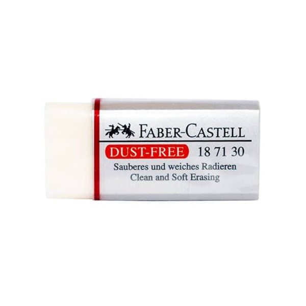 Faber Dust-Free eraser series offer the best performance in clean erasing. It also does not contain harmful plasticiser - Phthalate. The unique "Dust-Free" formula makes the eraser soft and guarantees excellent clean and smear-free erasing. The eraser residue and dust easily roll together for easier clean up. The comfort edge (chamfered corners) are thoughtfully crafted for precise erasing and prevent breakage. Also, the erasers are latex-free and dermatologically tested & approved.