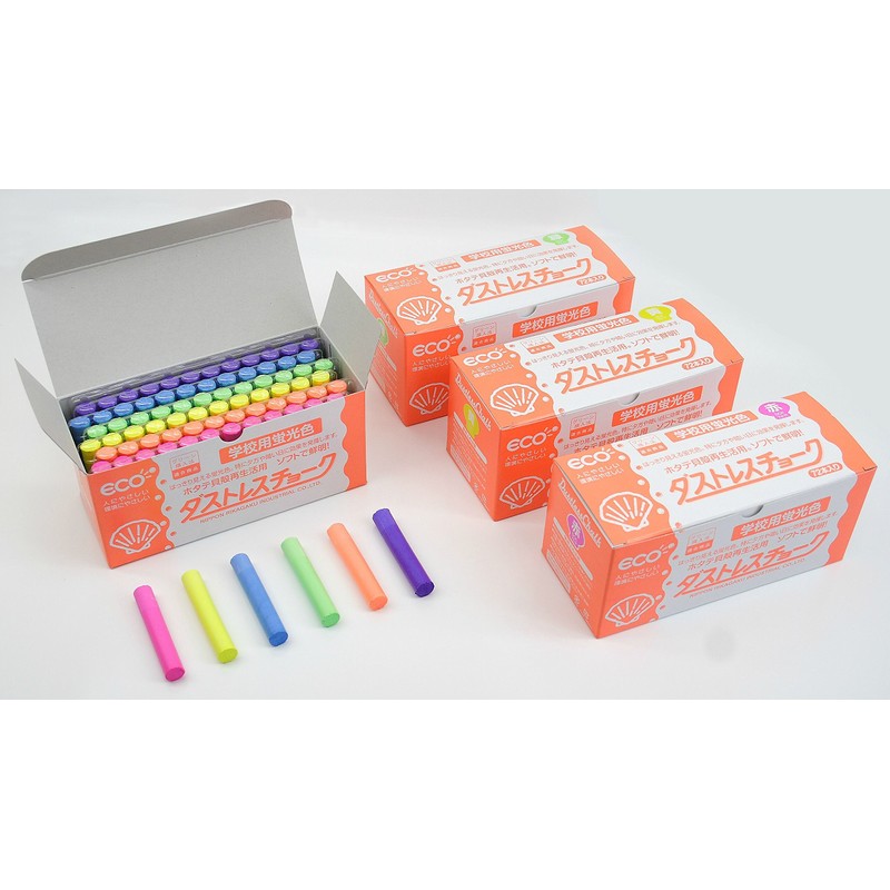 Chalk that utilizes renewed Hokkaido scallop shells. Florescent colors which are bright and clear to see. [Box Size] 2.7 x 6.5 x 2.9 inches
