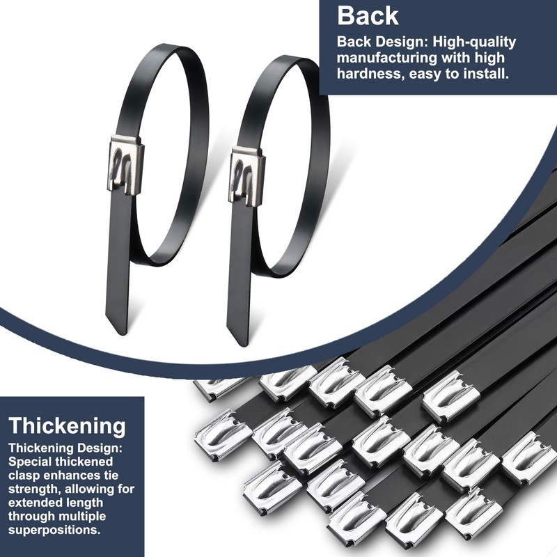 Duthcbw 30PCS 11.8" Black Epoxy Coated Metal Zip Ties, Heavy Duty Self-Locking Stainless Steel, Corrosion Resistant for Harsh Environments, Ideal for Machinery, Vehicles, Farm, Cable & Pipe Binding