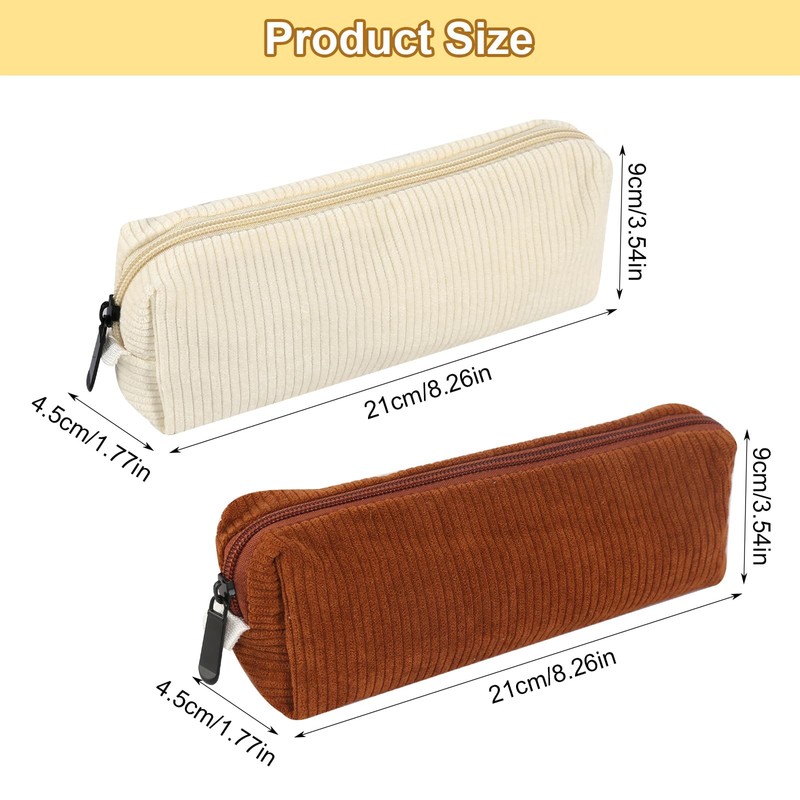 DUTIFUL Pack of 2 Pencil Case Corduroy Fabric Pencil Case Girls Pencil Case Teenager Pencil Case Cord Pencil Case Pencil Case for School Office (Brown, White), brown, pencil case small