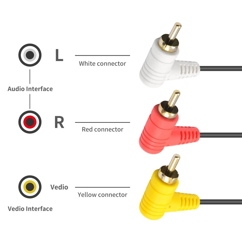 - Usage:RCA Audio Cable are divided into three cables: audio interface (red and white, forming the left and right sound channels) and video interface (yellow). Insert the plug into the TV corresponding color slot can be used normally.