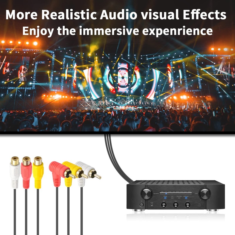- 3 RCA Cables: red, white and yellow AV interface design and audio, video equipment port color corresponding, clear at a glance, more convenient connection. Plug and play, convenient and fast transmission.
