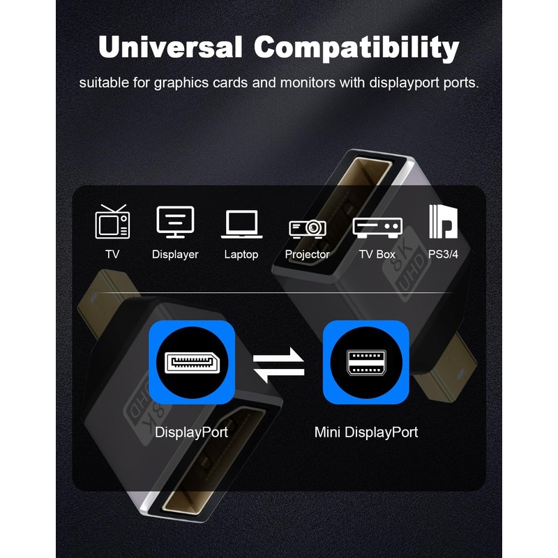 • Plug and play, our 8K Mini DisplayPort to dp adapter features 24k gold-plated connectors, which are more corrosion-resistant compared to nickel-plated connectors. The high-quality aluminum alloy casing ensures durability for stable video and audio signal transmission. It can be plugged and unplugged up to 15,000 times. Packaging: 2 Pack.