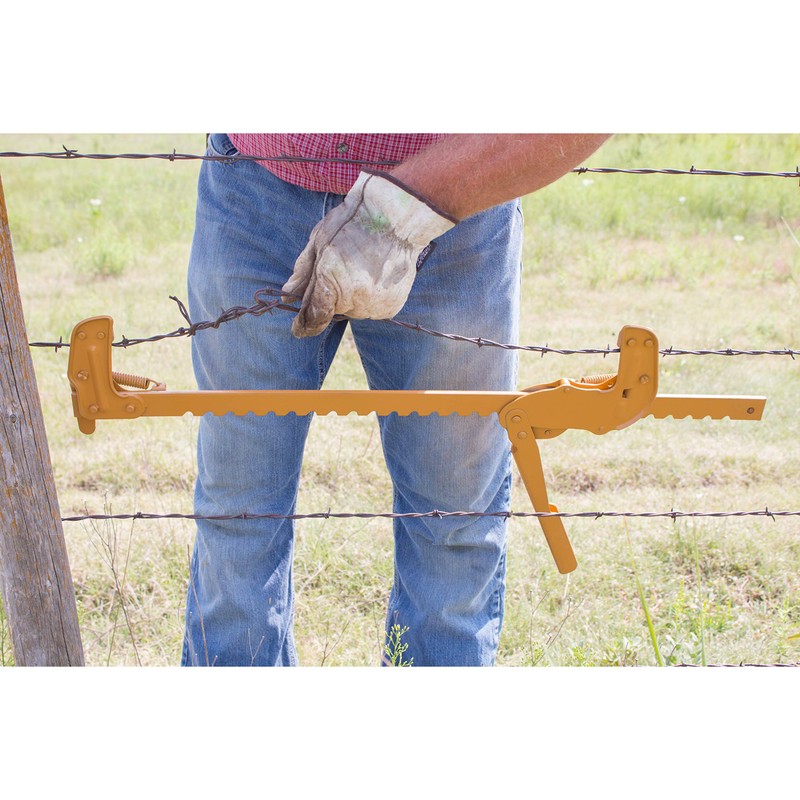 - Quickly tighten any fence such as high tensile, barbed wire, or smooth wire