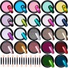 Duufin 22 Colors Chrome Powders Pear Nail Powder Metallic Powder Mirror Pearl Chrome Nail Powder Iridescent Aurora Nails Art Powder with 22 Pcs Eyeshadow Sticks, 1g/Jar
