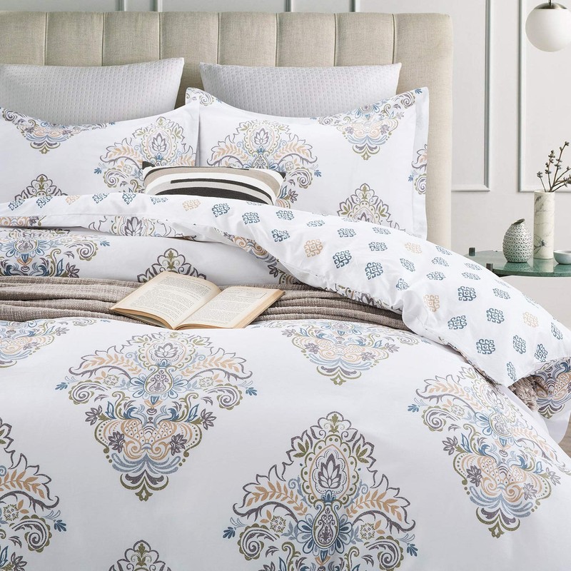 - ★Large Damask Medallion printed in a soft blue and tan, a cream base color combination to make your bed look more elegant.